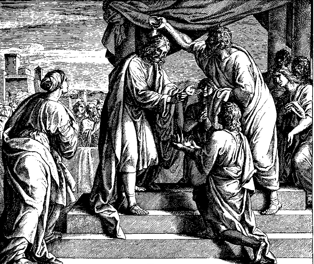 Less than a week before, crowds had welcomed Jesus into Jerusalem with cries of "Blessed is he who comes in the name of the Lord." But this advent was not when the promises to David would be consummated. Instead, David's covenant was confirmed by the healing miracles of the Good Shepherd. Jesus will fulfill all the promises to David at his second advent when he is received by triumphant shouts at Jerusalem's gates.